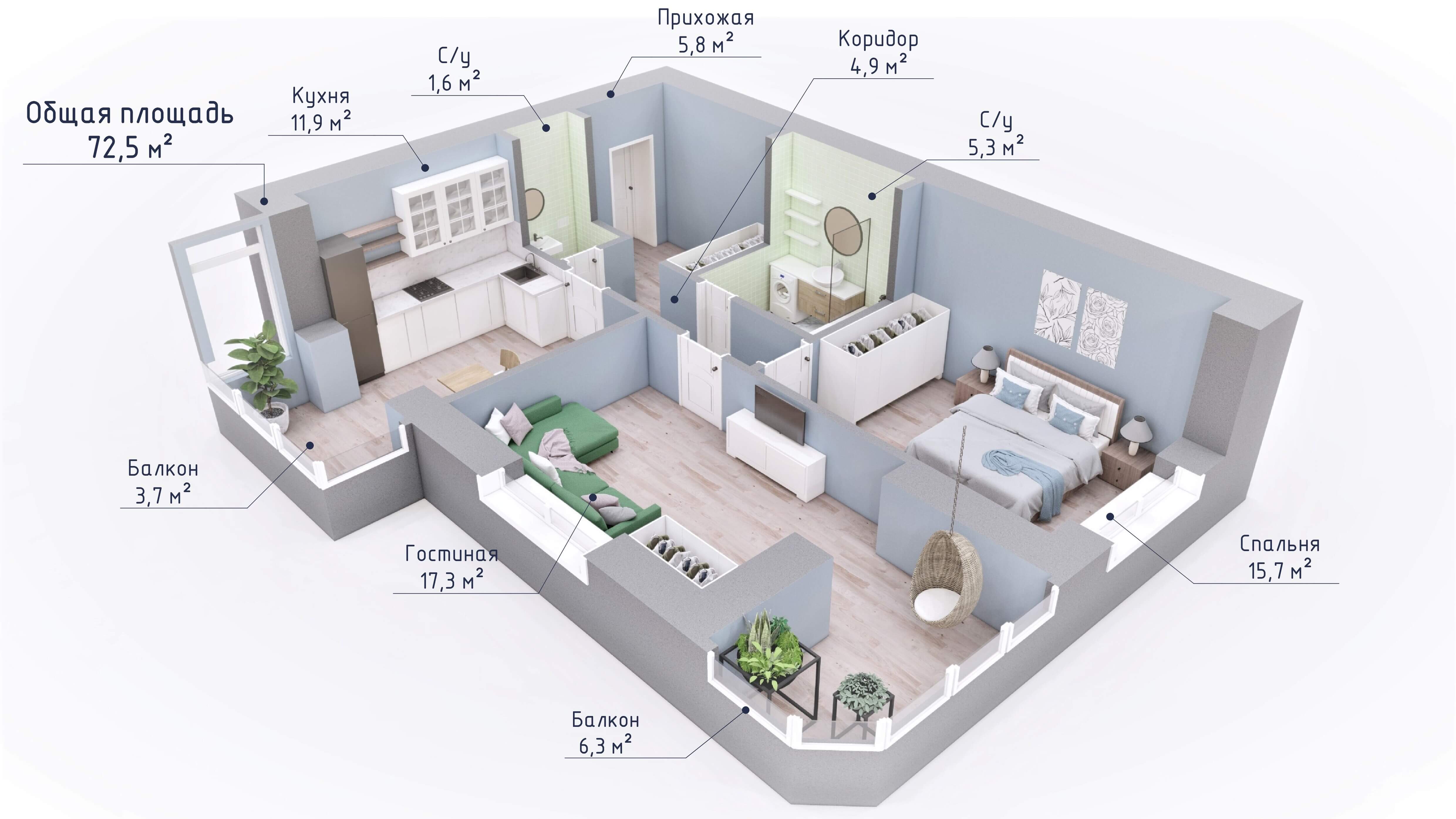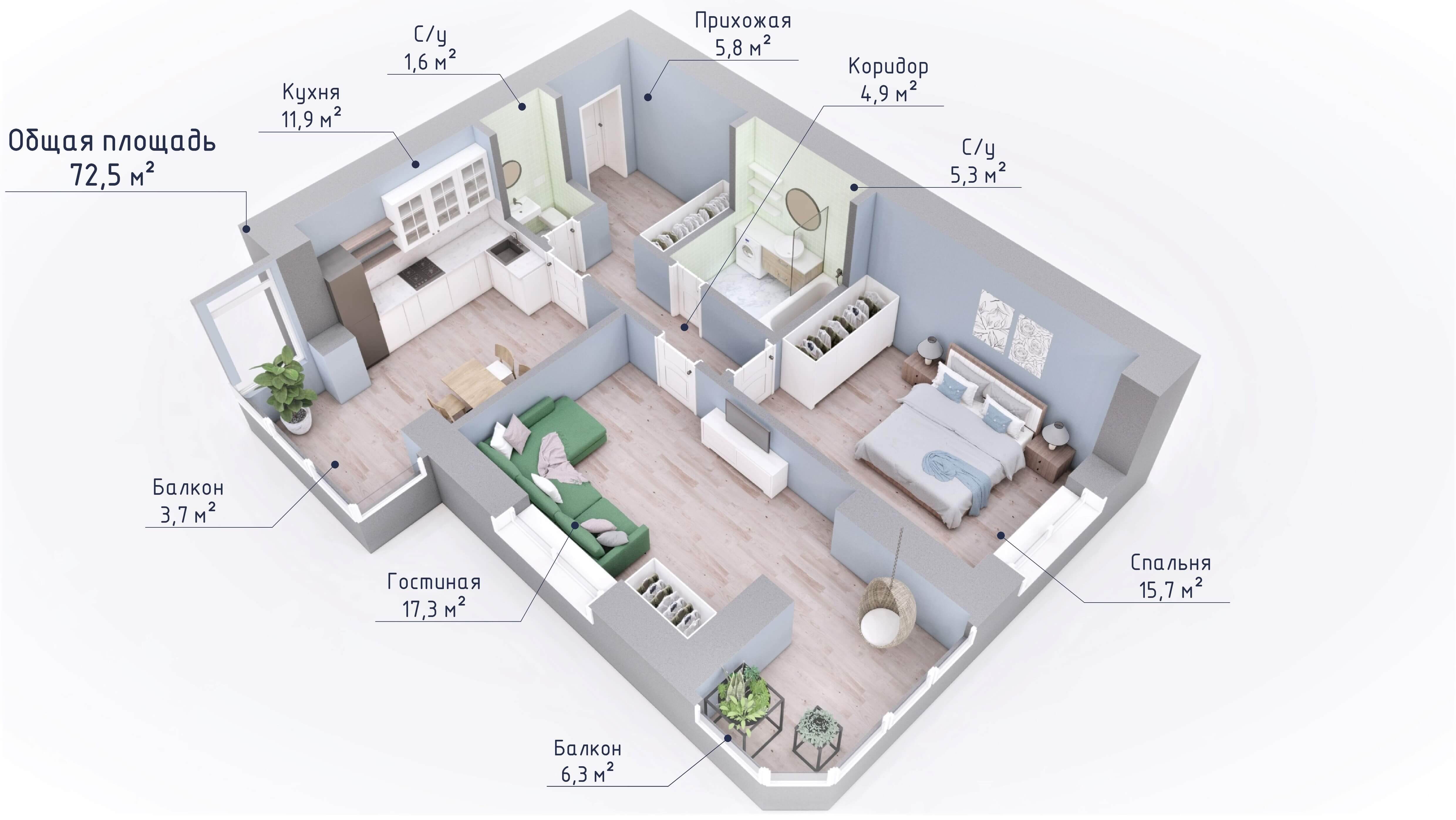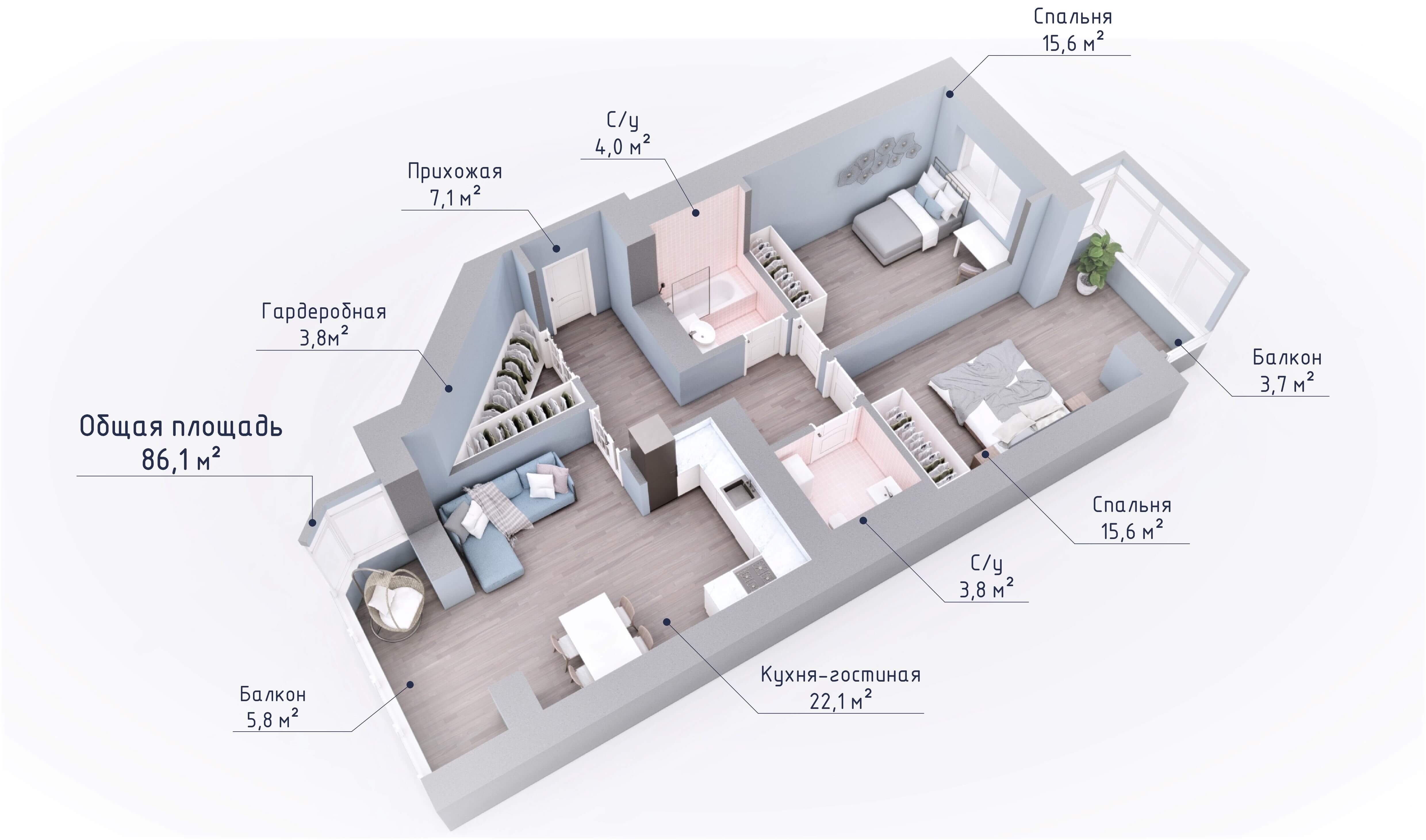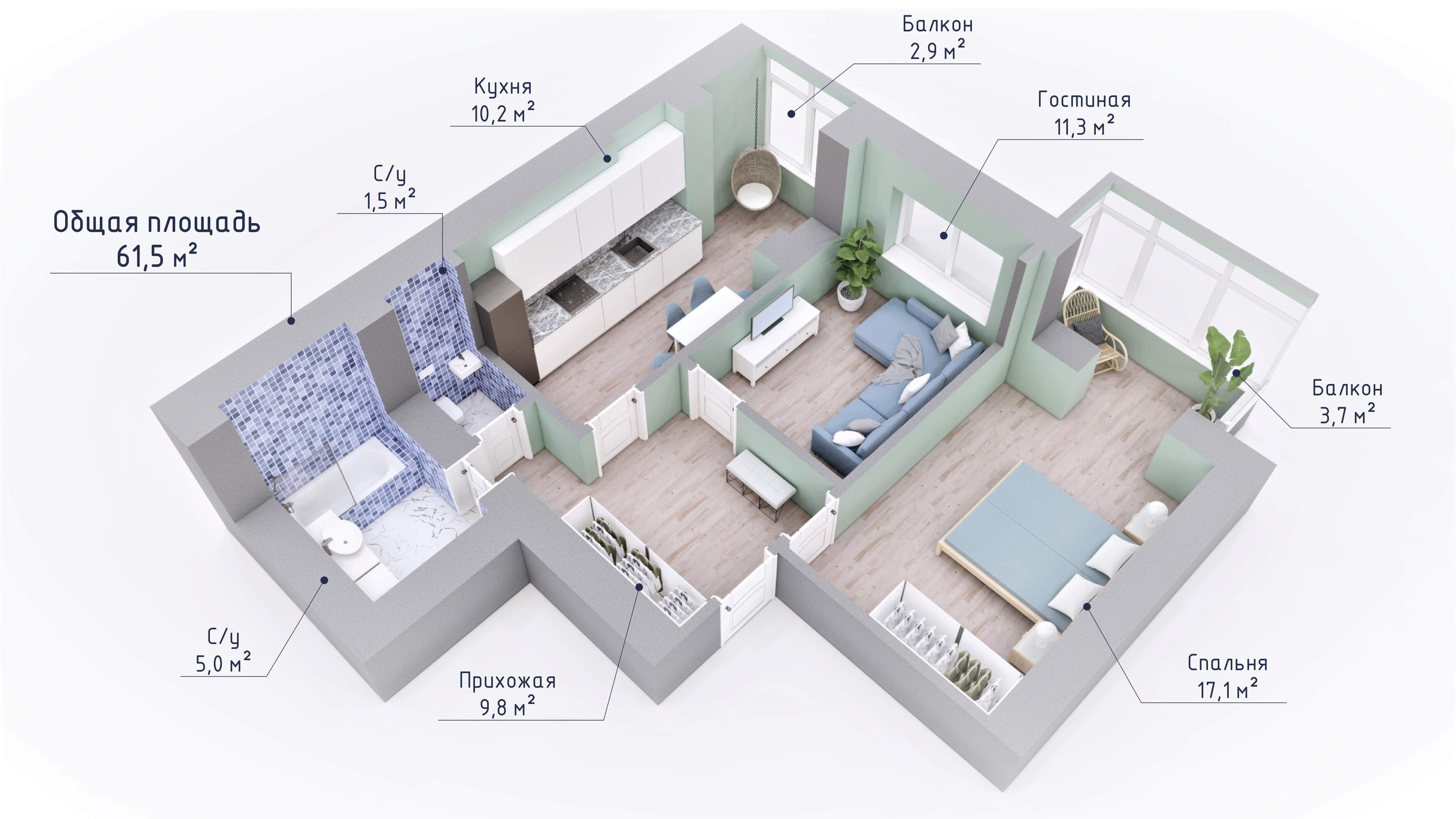 | 2кк: | 61.5 м2 | 70.5 м2 | 72.5 м2 | 86.1 м2 | ||||